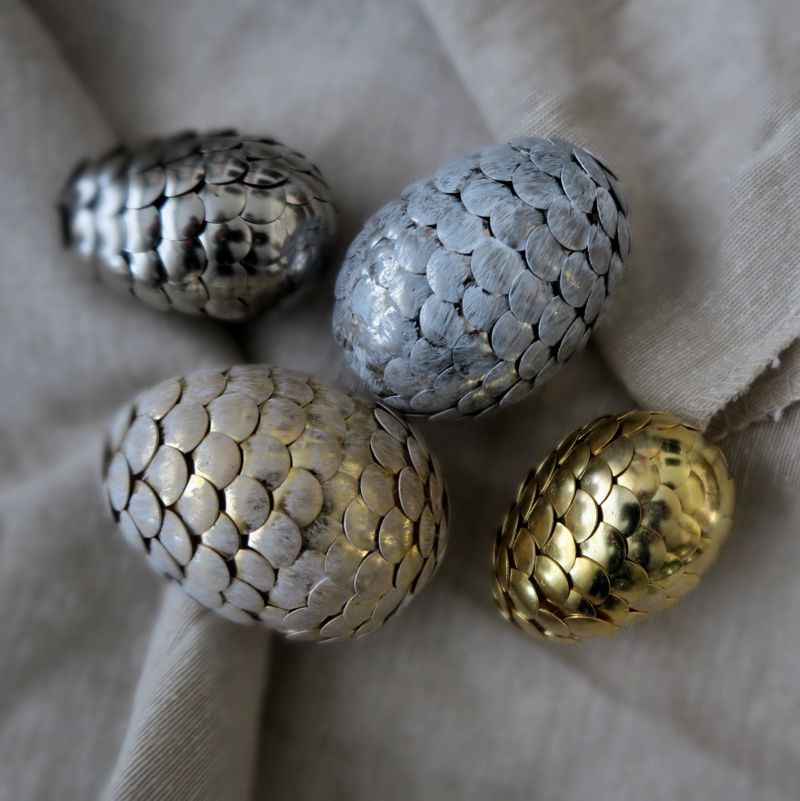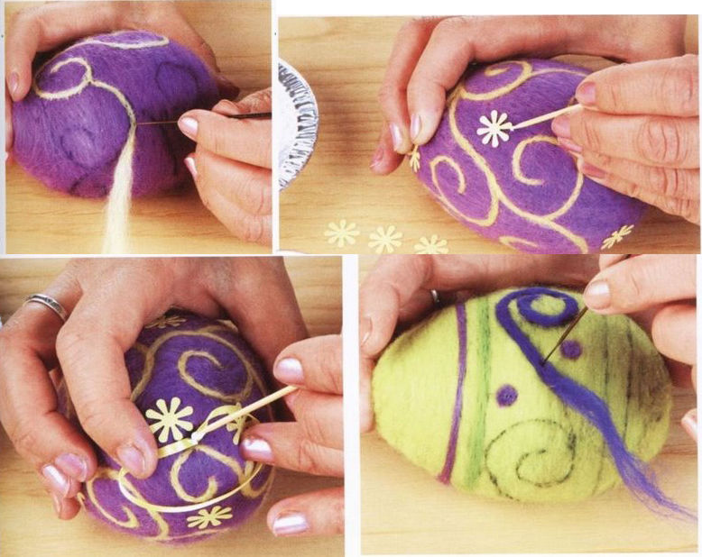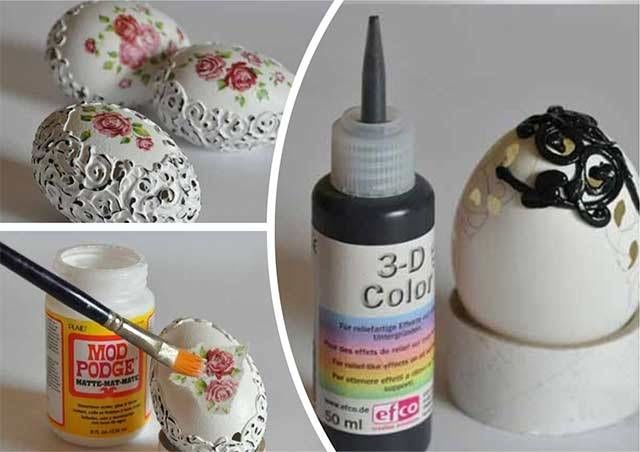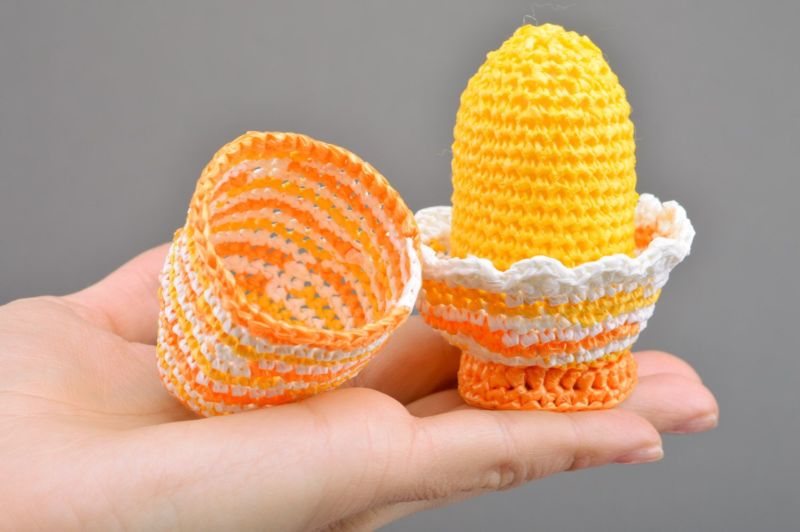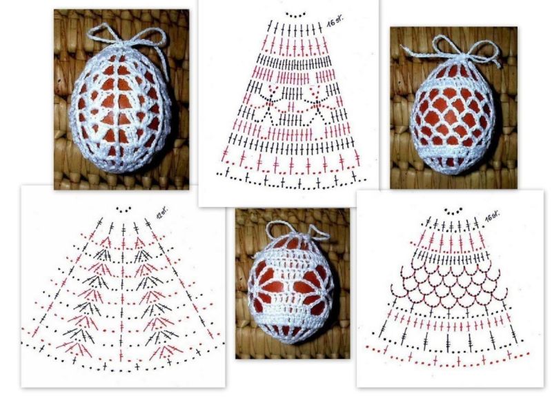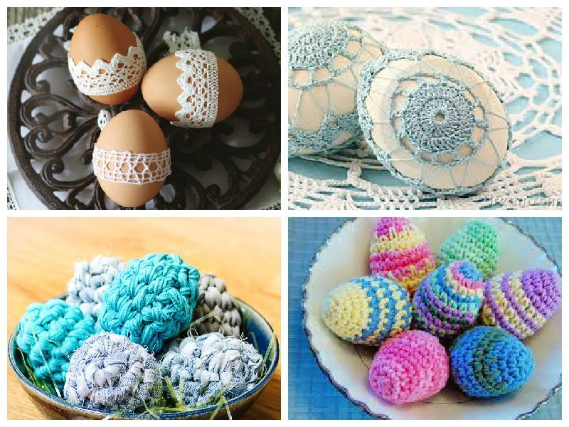Декоративните яйца могат да бъдат изработени изцяло от прежда (техника амигуруми) и облечени в различни дантелени "костюми" (ажурни великденски яйца).