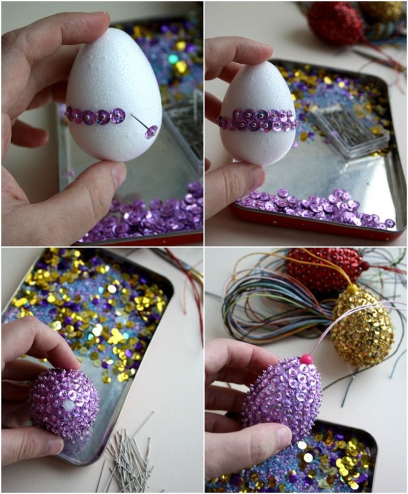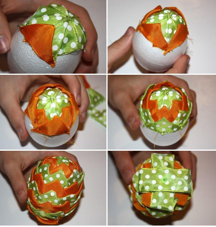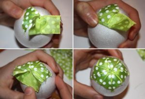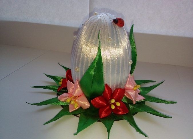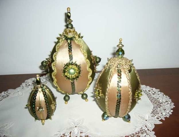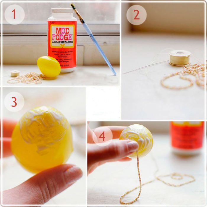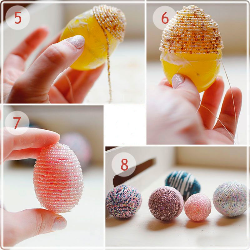 В този случай можете да увиете мънистата около детайла или да ги разтегнете и да ги увиете около яйцето, като го завъртите.
