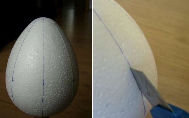 Това са заготовките, които трябва внимателно да се изрежат с ножица, да се сгънат наполовина по овала на яйцето и да се залепят в гънките.
