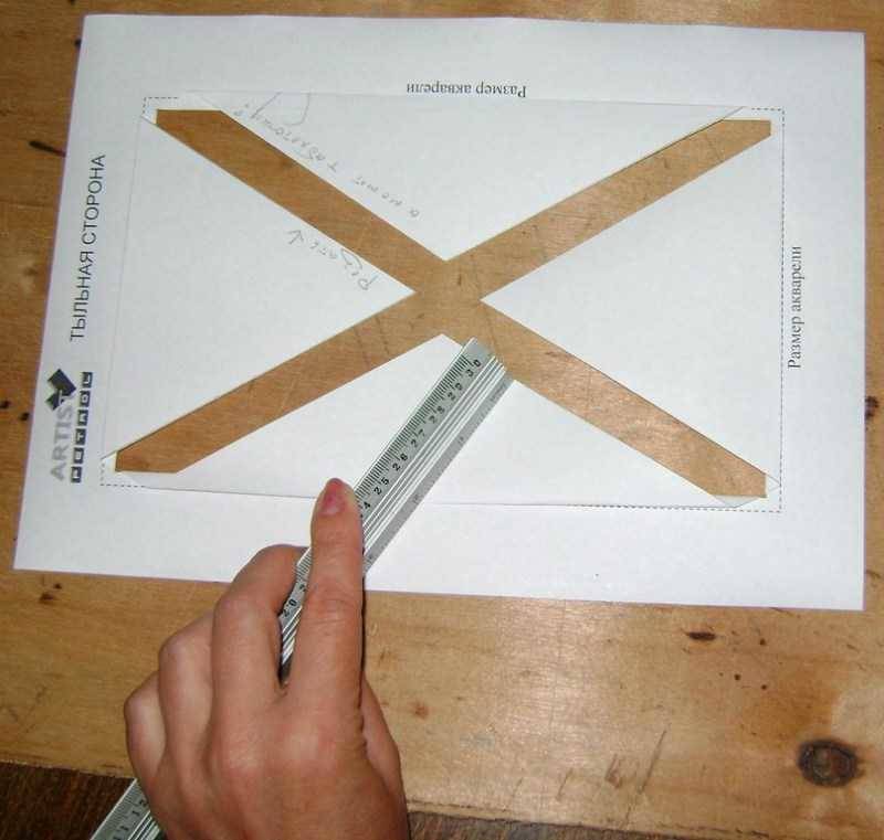 - Начертайте диагонали през правоъгълника на прозореца. Разрязване.