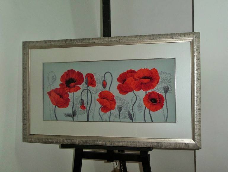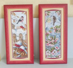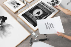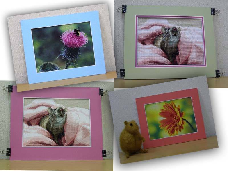 - Поставете всяка картина, която сте подготвили, с изключение на бродериите с конци, за които най-добре е да се използва хартиена рамка.