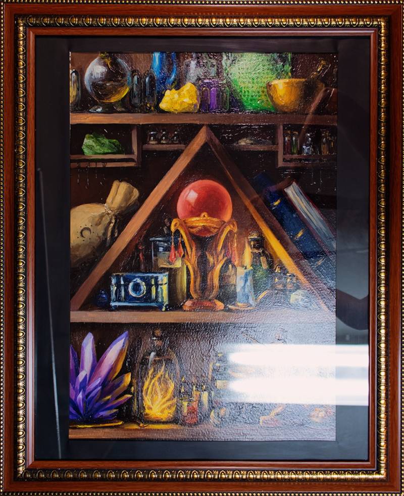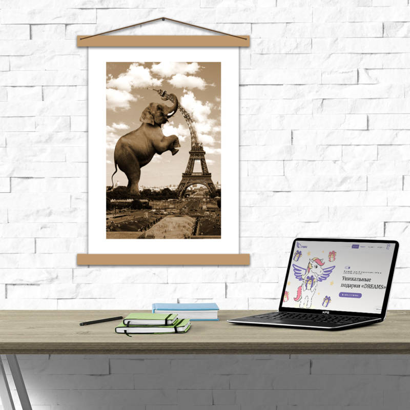- Вписва се в картина или фоторамка.