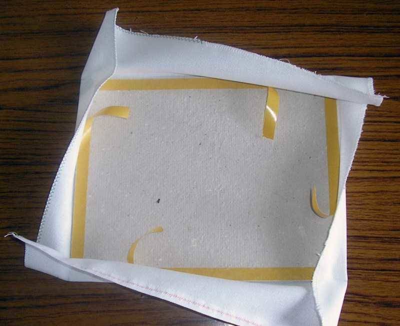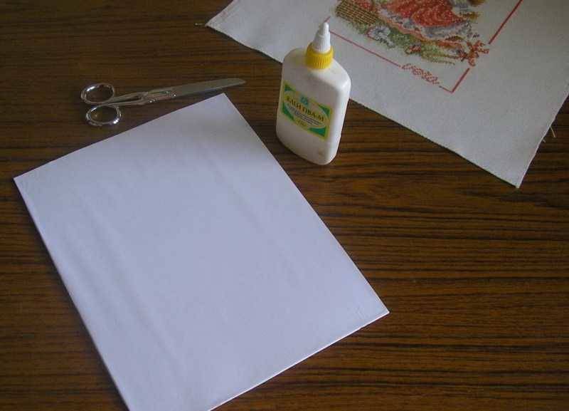 Трябва да се подготви предварително бродерия. Изгладете го, след което го залепете върху тежка основа: