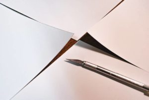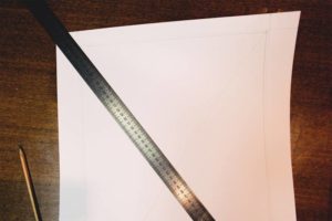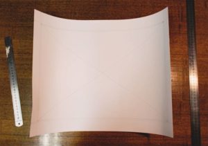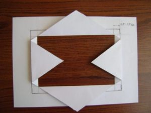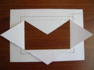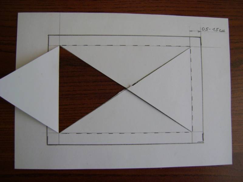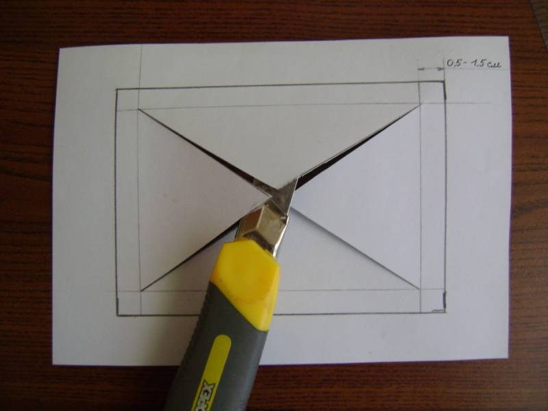 - Изрежете правоъгълник с размер 1,5-2 см от плата по периметъра на хартиената заготовка.