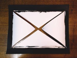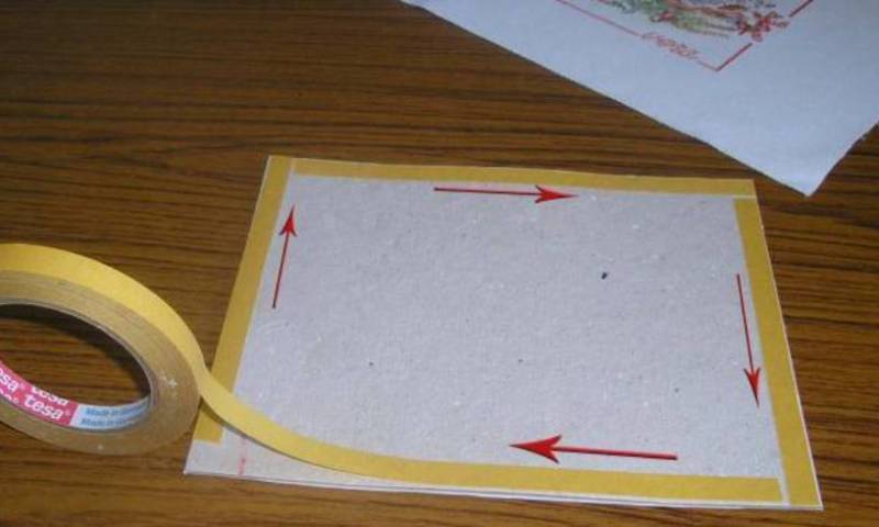 - Закрепете сгънатите краища към картона с двустранно тиксо.