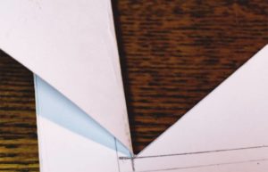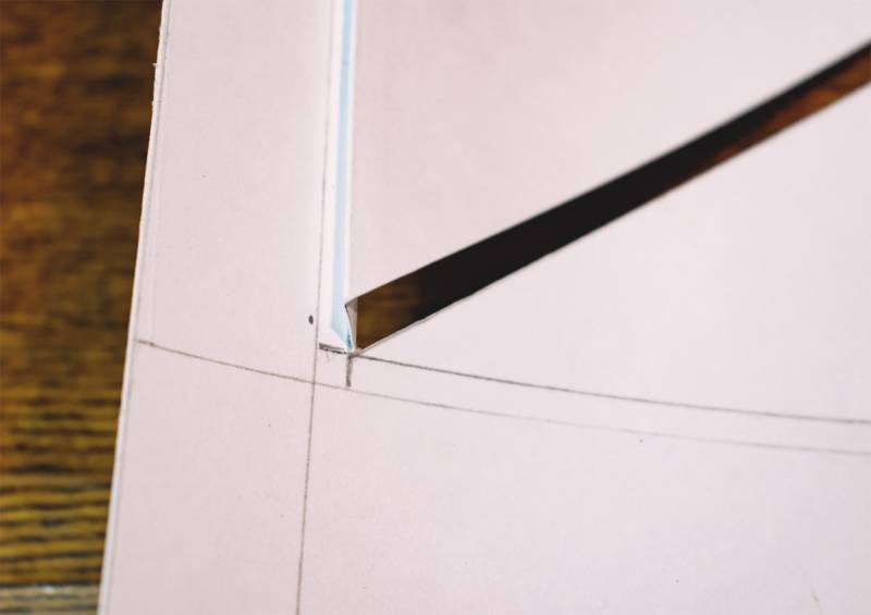 - Изрежете по диагоналите до границите на вътрешния правоъгълник.