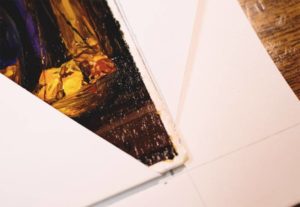 Като странична бележка. Рамката трябва да е с 3 - 5 мм по-малка от картината, така че хартията на рамката да покрива малко ръбовете на картината.