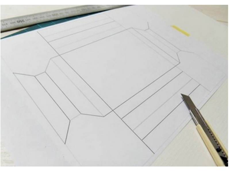 Необходими са ви ножица и остър кухненски нож. За да направите линиите на сгъване чисти и спретнати, използвайте тънък метален линийка. За отбелязване на границите ще са необходими моливи, линийка и гума. За закрепване на детайлите са необходими лепило и тиксо.