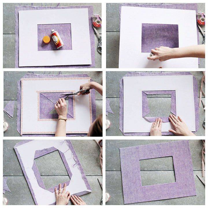 Рамките, изработени от плат, придават на крайния продукт изискан, благороден вид. След като сте усвоили оформянето на хартиена рамка, е лесно да работите с покритие от плат. Предварително нанесете нишесте върху плата и го изгладете до сухо. Материята не се деформира и не се смачква: