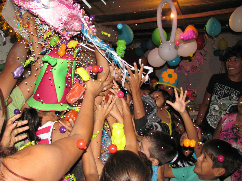 Бонбони (или други пълнители) се разпръскват от него. Гостите трябва да ги вземат бързо. Победител е този, който събере най-много бонбони.