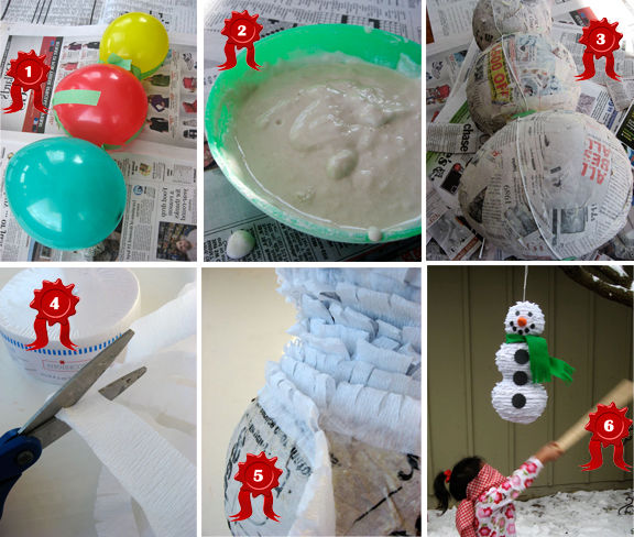 В навечерието на Коледа и Нова година направете пинята във формата на коледна елха или снежен човек с оригинални монети от бонбони вътре. Можете да добавяте бележки за късмет и поздравителни картички.