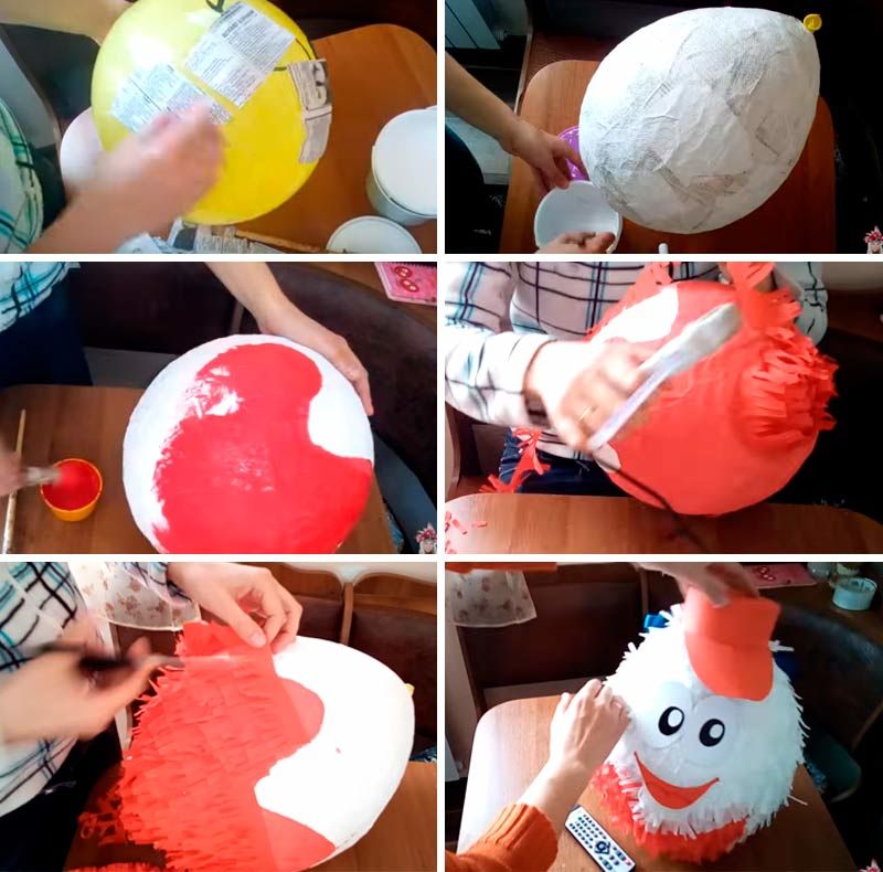 Направете обикновена пинята да прилича на злобна птица, на Нюша, на Кар-Карич и т.н. Залепете подходящи очи, крила, опашки, уши и т.н. от изрязана хартия.