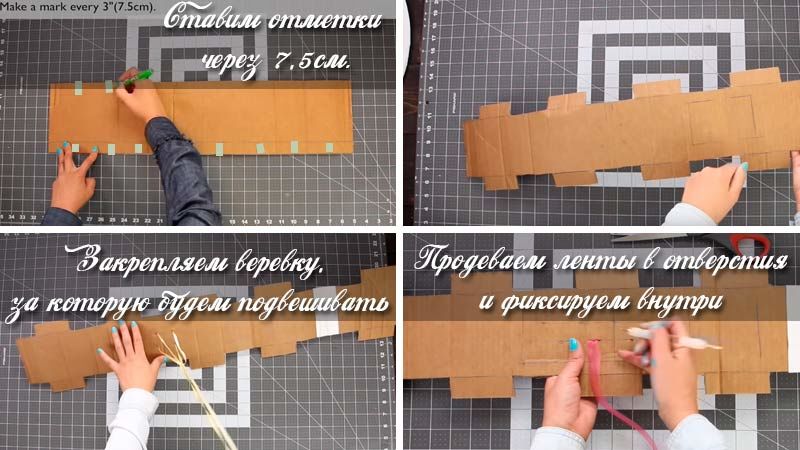 - Маркирайте лентата на интервали от 7,5 см и изрежете краищата на зъбци (един по един).