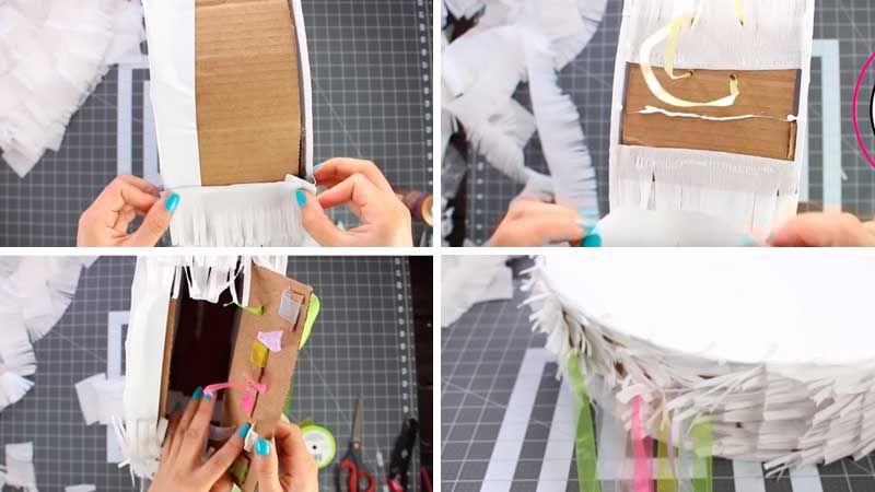 - Покрийте кръглите страни на пинятата с бяла гофрирана хартия.