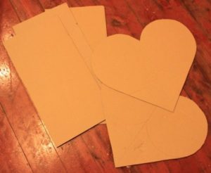 - Първо, нарисувайте шаблон на сърце върху картон от кутия и го изрежете с ножица. Проследете шаблона върху другото парче от кутията и изрежете и него.