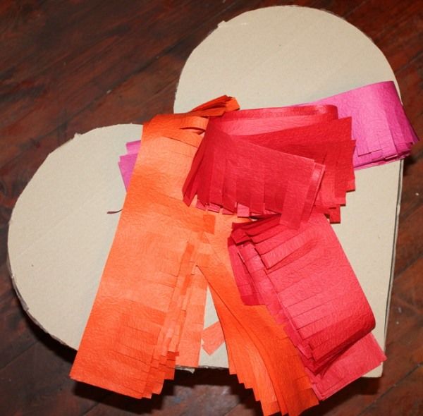 - Преди да залепите долната част на сърцето, напълнете аксесоара с бонбони или малки сърчица, изрязани от хартия.