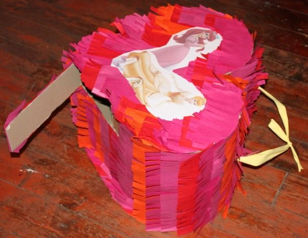 За да направите добре изглеждаща пинята, трябва да украсите рамките. Най-често те се украсяват с велпапе. Залепете изделието с припокриващи се хартиени ресни. Оставете играчката да изсъхне за около 24 часа, след което я украсете. Това зависи от темата на празника: