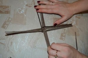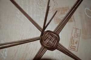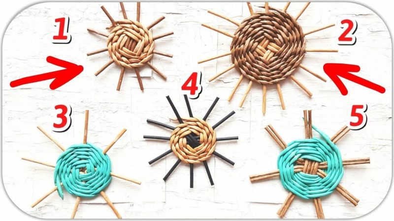 Най-достъпният начин е простото плетене от клонки, като се оформя подложка с квадратна или правоъгълна форма. Декоративният елемент може да се залепи върху парче тежък картон или върху дъното на кутия. Със залепването на тънките тръбички лесно се получава плътна основа за бъдещия сувенир.