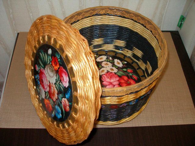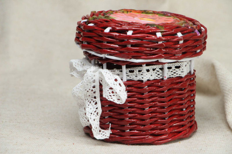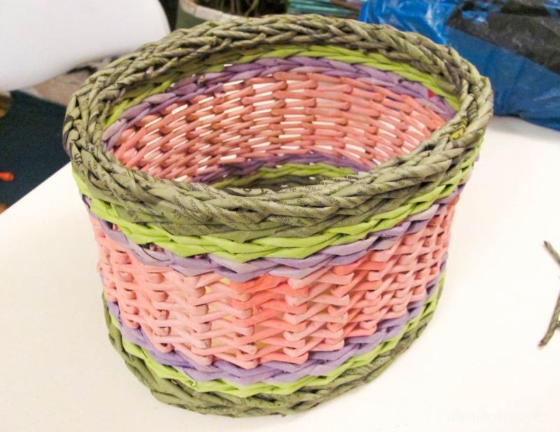 Багренето на хартиени тръби с технически багрила се извършва навън или поне на открит балкон. Готовият продукт от вестникарски тръби, имитиращ кошница или плетена кошница, може да се покрие с тониран лак. Лакът ще предпази изделието от намокряне.
