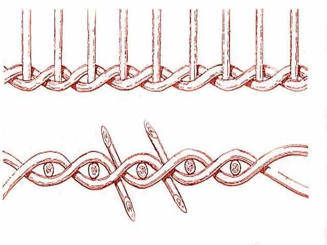 На всеки три реда трябва да подрязвате опорите и да коригирате хоризонталните ленти. При кръгло тъкане броят на стойките е нечетен.