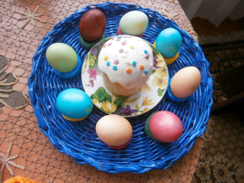 Най-лесно е да боядисате ватан и офис хартия, която се поставя върху декоративните части на "плетеницата".