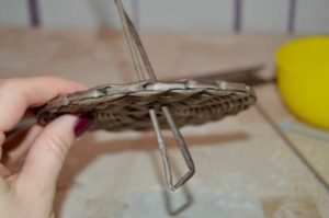 Методът за оформяне на овално дъно е много прост, въпреки че накрая изглежда по-сложен. Препоръчително е помощните лиани да се навлажнят малко, за да се увият по-добре, когато основата на фигурата се разшири.