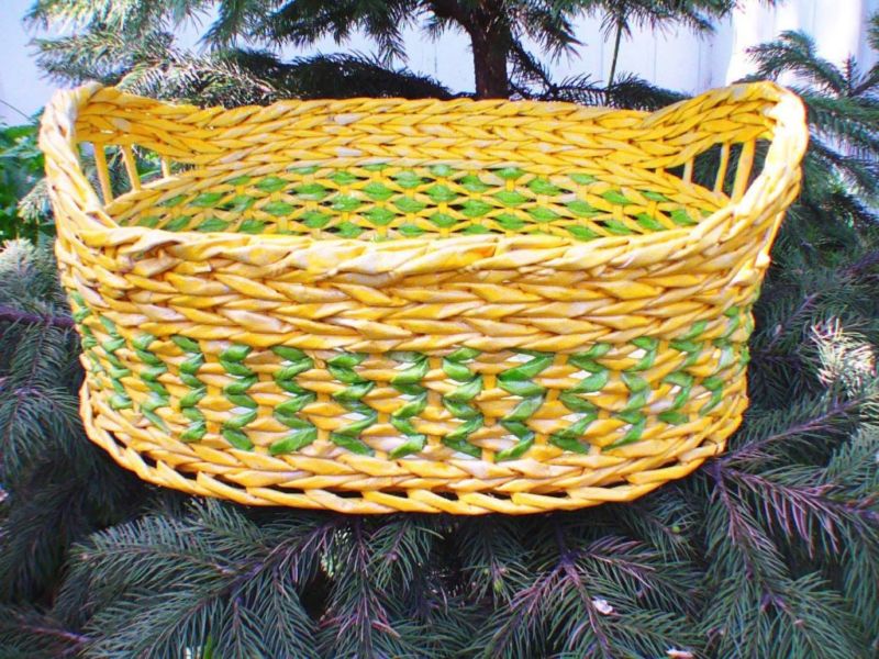 Списанията са направени от дебела восъчна хартия и е трудно да се направи едноцветна лоза от нея. Но тя е отличен материал за дъна при плетенето на кошници и вази. От тях излизат здрави дръжки за чанти и стойки за самоделни мебели от вестникарски туби - това са масички за кафе и "плетеници" за столове.