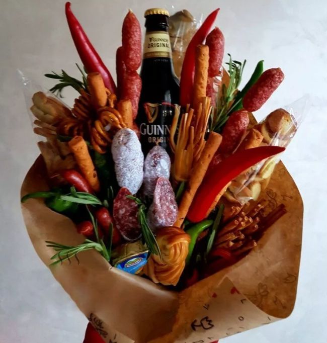 Изненадайте съпруга/съпругата с ръчно изработени подаръци. На първо място, това са ядливи подаръци: букети от бира, закуска в леглото с оригинални сандвичи или яйца във формата на сърце, необичайна вечеря на свещи, бисквити за късмет.