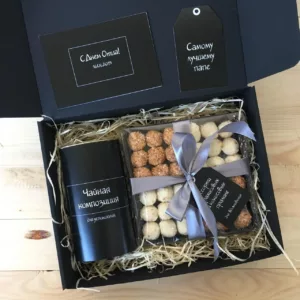 - Комплект от кафе (или чай) и шоколад, опакован в подаръчна опаковка с оригинален дизайн и поздрав;