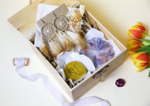 - Кутия за дреболии. Купете ковчега в магазин, но се заемете сами с украсата му. Лелята ще се зарадва на ръчно направен подарък! Украсете кутията с мъниста, панделки и цветя. Оставете въображението си да се развихри!