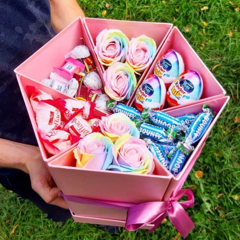 - Кутия за изненади. Изненадата определено е нещо оригинално и неочаквано. Украсете вътрешните стени на кутията със свои снимки, сложете вътре бонбони, красиви дрънкулки, фигурки. Напишете и своите пожелания.