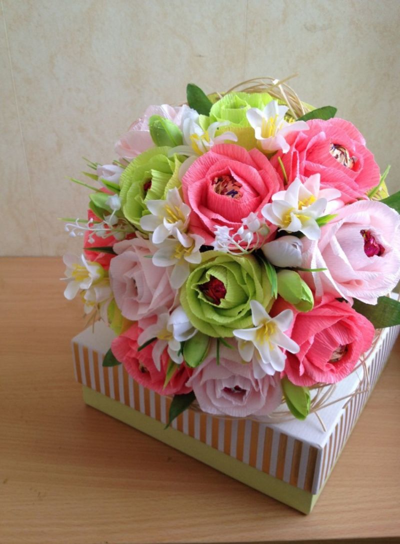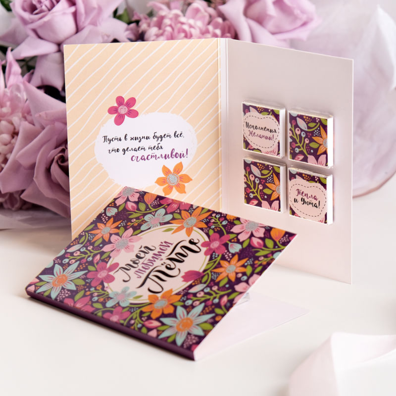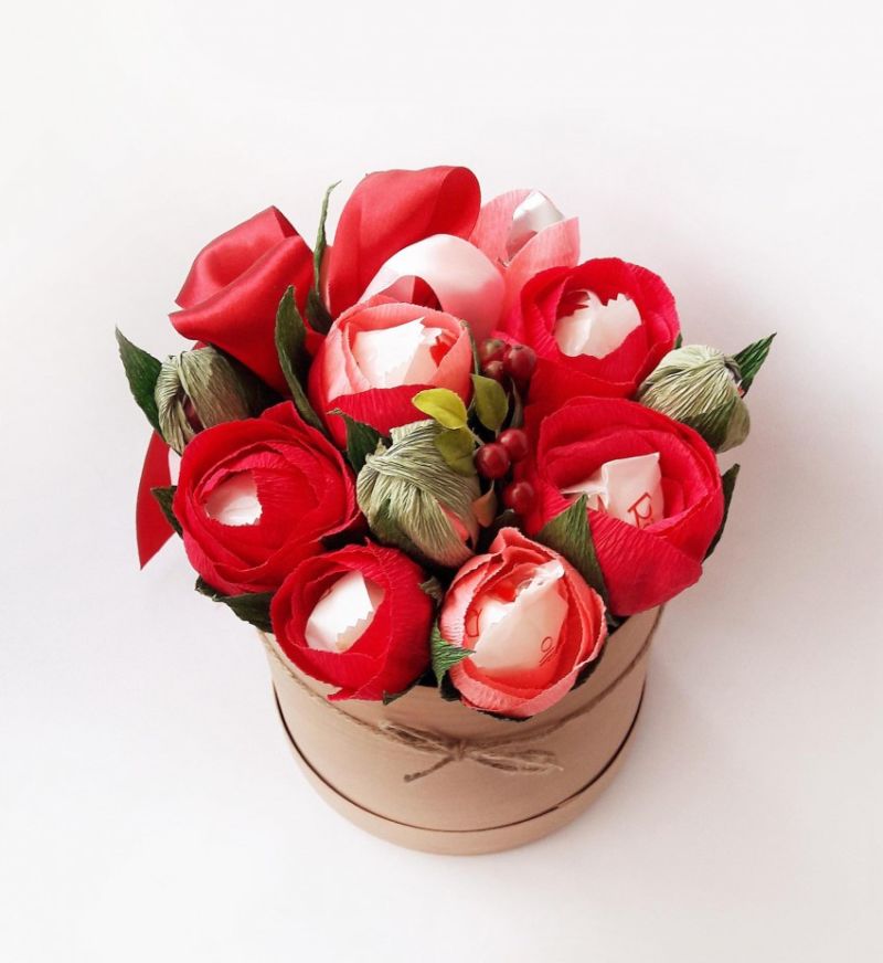 - Вкусен букет. Вместо цветен букет, направете вкусен - сложете любимите сладкиши на леля си.