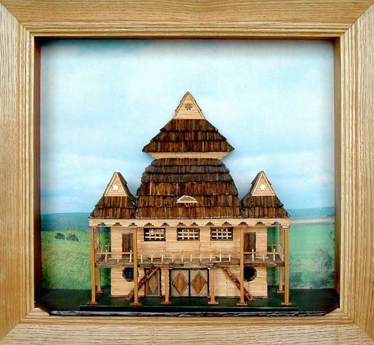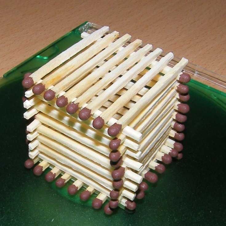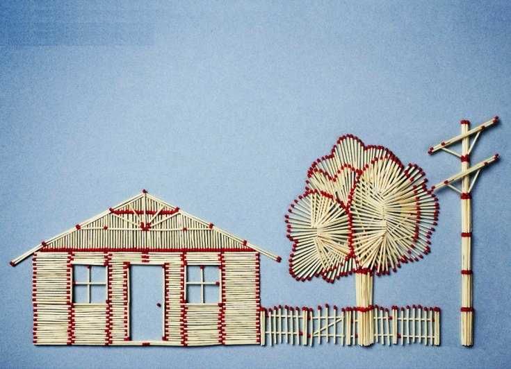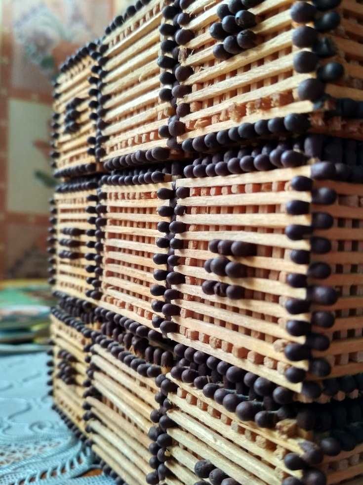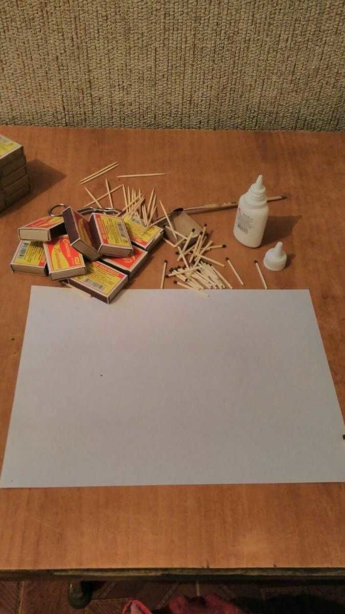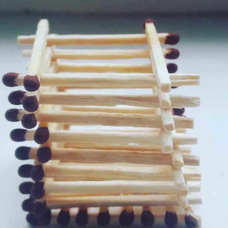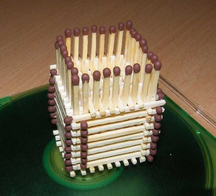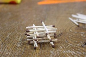 - Просто подредете мачове с отхапани глави като дървени пръти или греди. Не забравяйте да закрепите всичко с лепило, за да придадете по-голяма здравина на конструкцията.