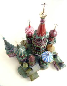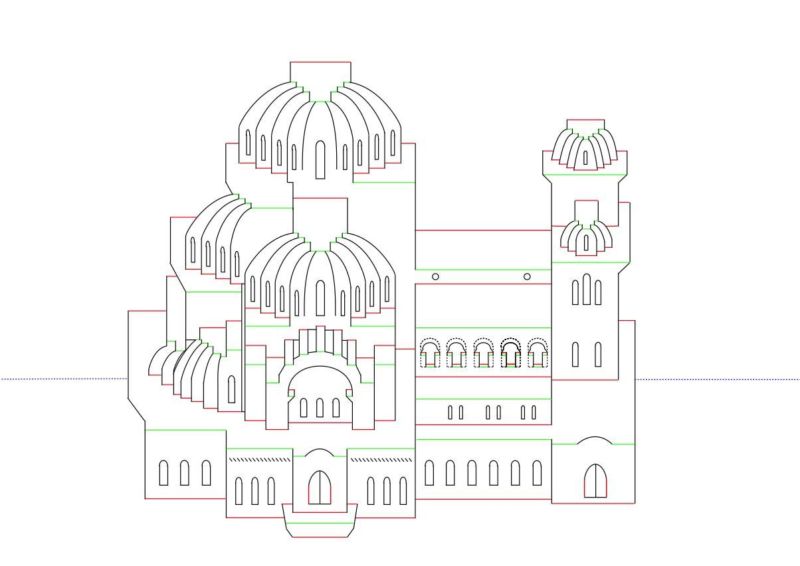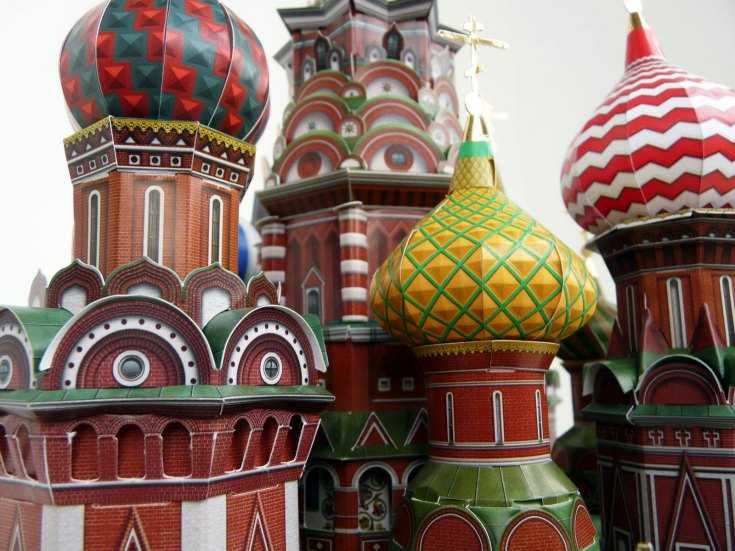 - След това вземете цветна хартия и изрежете малки парченца от нея или изрежете цели заготовки, кръстове, куполи, стени.
