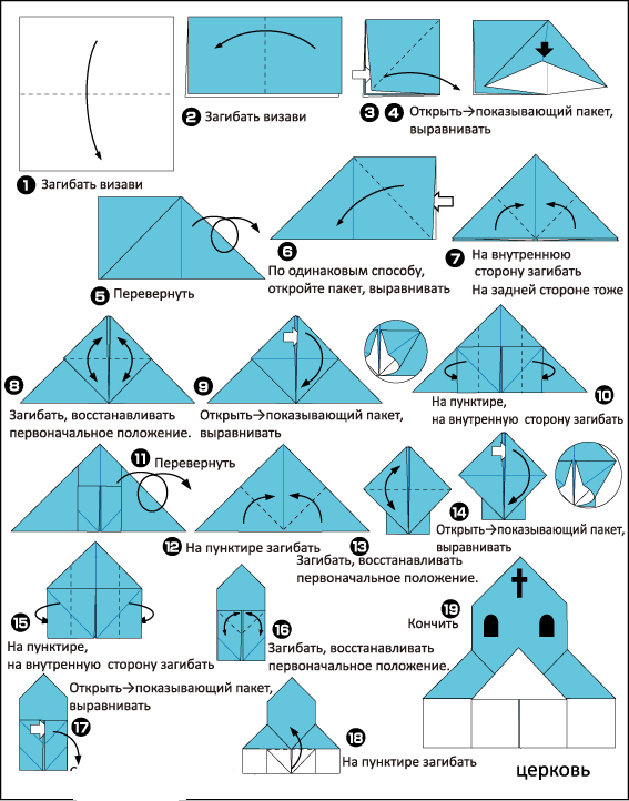 - Използвайте основата "къща", за да направите църква в техниката оригами.