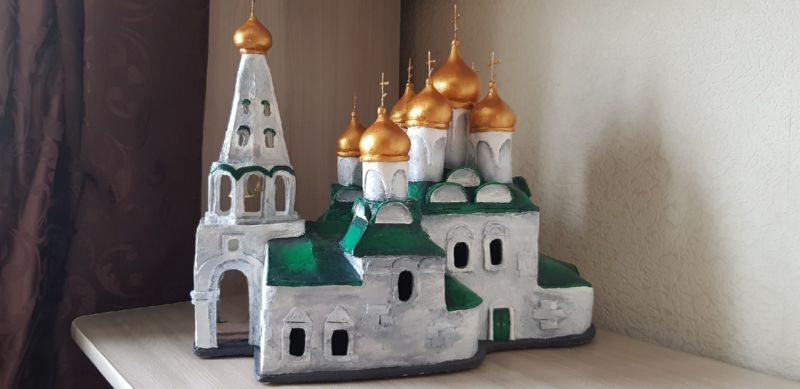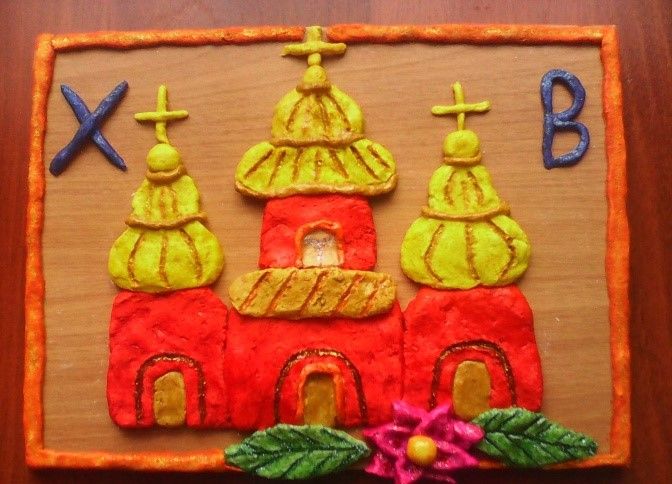 Подобен формат може да се направи от тесто и глина. За изображението и идеята можете да намерите всякаква снимка или готова рисунка на църква.