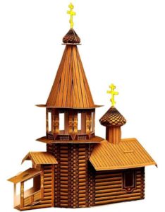 Можете да използвате кафява хартия, за да направите църква от селски тип, където такива сгради често са направени от масивно дърво, където в нашия случай, цветни ленти от хартия, ще бъде техен аналог. Такава църква ще бъде интересно да се направи както за възрастни, така и за деца.