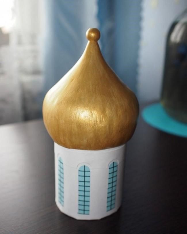 - Куполът може да се направи като конус от цветна жълта хартия, а кръстът - от запалки или друг материал.