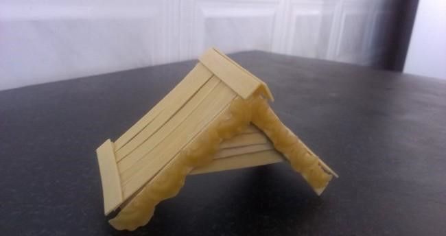 - След това отгоре правим покрив от залепени пръчици във формата на буквата "L".