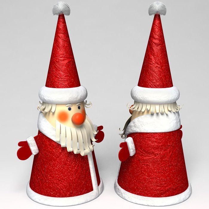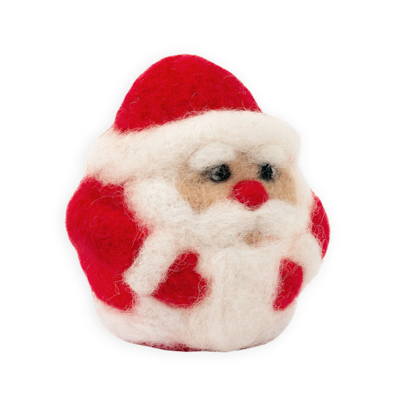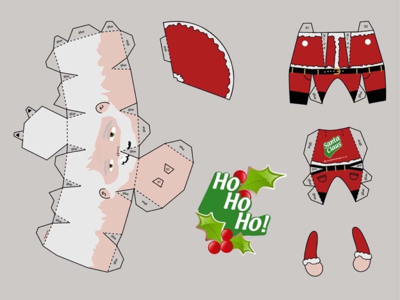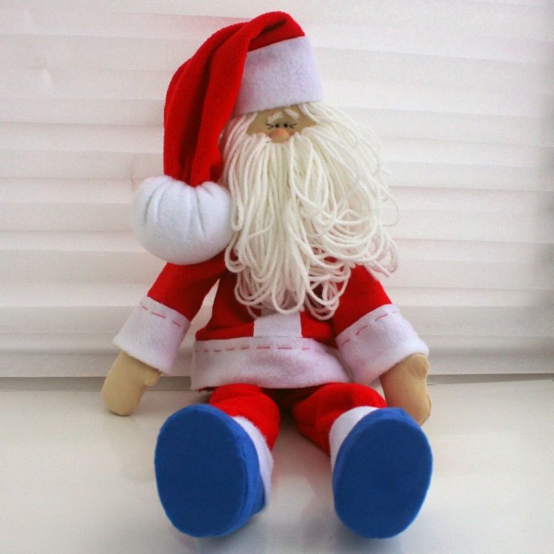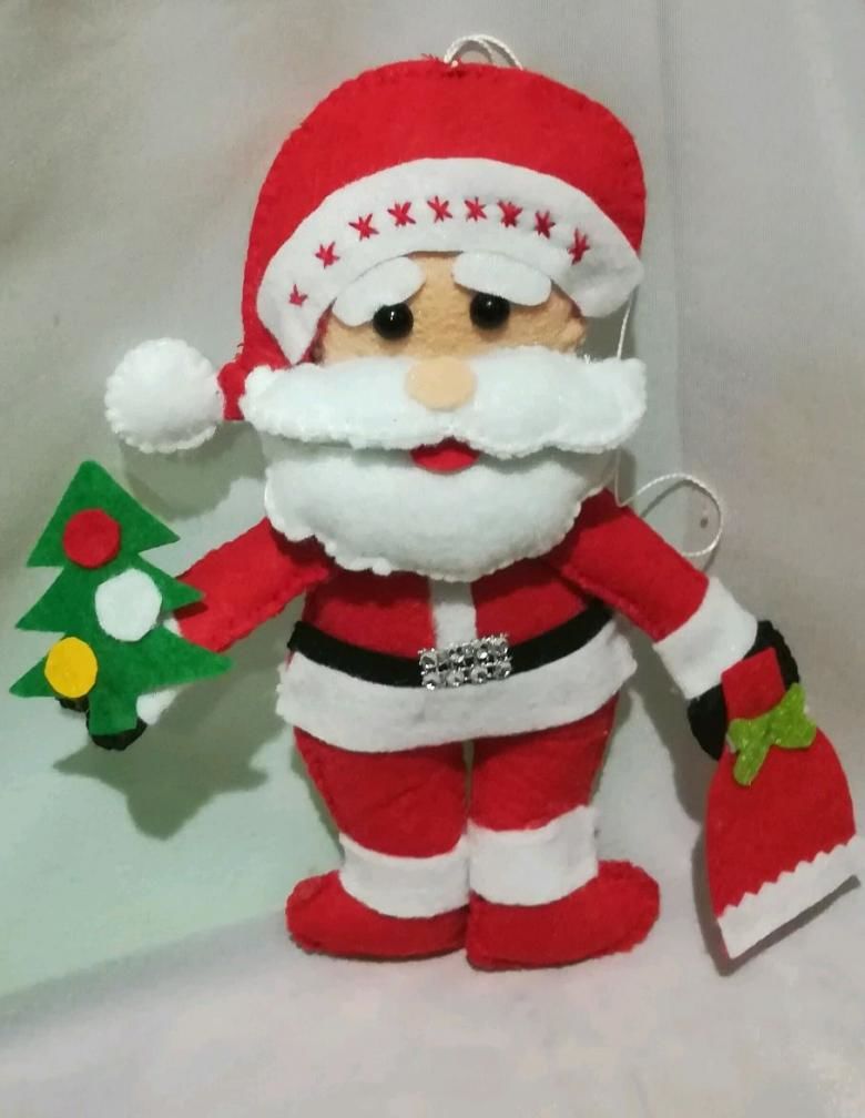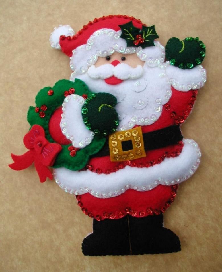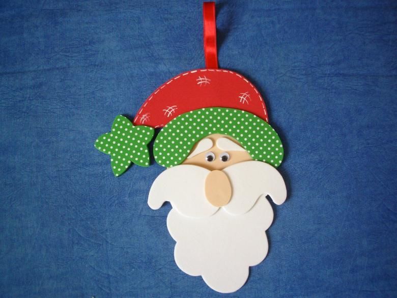 От този материал могат да се изработят красиви играчки. Намерете снимка на любимото си лице на Дядо Коледа и изрежете всички необходими части. Това е бялата брада, лицето, носът, очите и ги залепете. Направете две еднакви заготовки. След това ги зашийте заедно, като ги напълните с памучна вата.