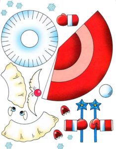 - Изрежете от червена и бяла хартия основните части за нашата работа.