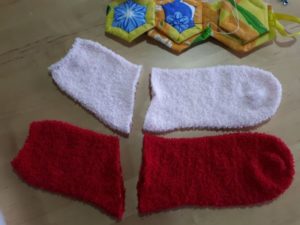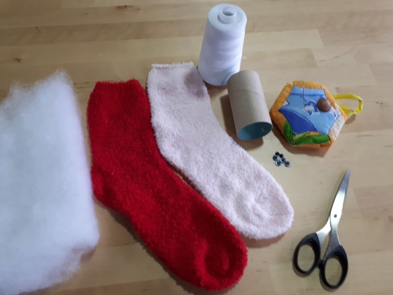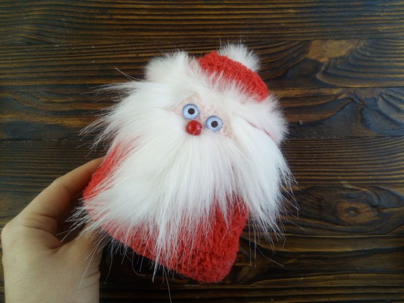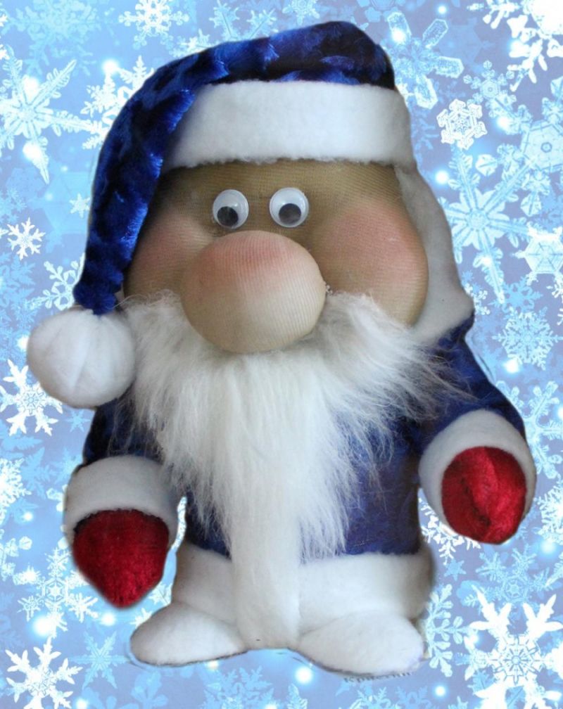 Направете интересна играчка от плетен червен чорап, което е доста просто. Трябва да отпечатате лицето на Дядо Коледа и да го нарисувате по желания от вас начин.
