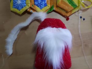 Това е прекрасен занаятчия в навечерието на Нова година. Ако зашиете примка към шапката, можете да я закачите на дървото.