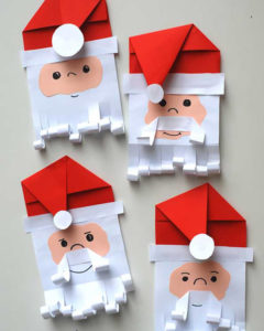 - Можете да разпечатате в интернет снимка на лицето на Дядо Коледа, към която ще бъдат залепени нашите кръгчета. Използвайте бели парчета за украса на брадата и косата.