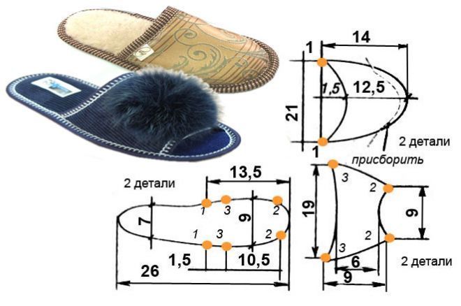 - След това парчетата се изрязват от филц, а после всяко от тях се пришива към заготовка. За да изглеждат чехлите още по-добре, можете да направите закръгляне по краищата, като използвате зигзагообразен шев. А с помощта на украшенията можете да ги направите уникални и необичайни.