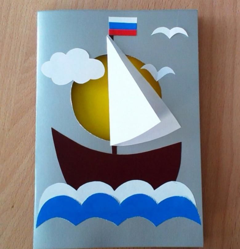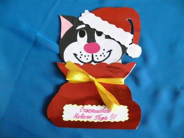 На лицевата страна детето може да нарисува всичко, което му хрумне, като използва различни материали: бои, моливи, пастели, флумастери и др. От вътрешната страна можете да напишете поздравления, пожелания или кратко поздравително стихотворение.