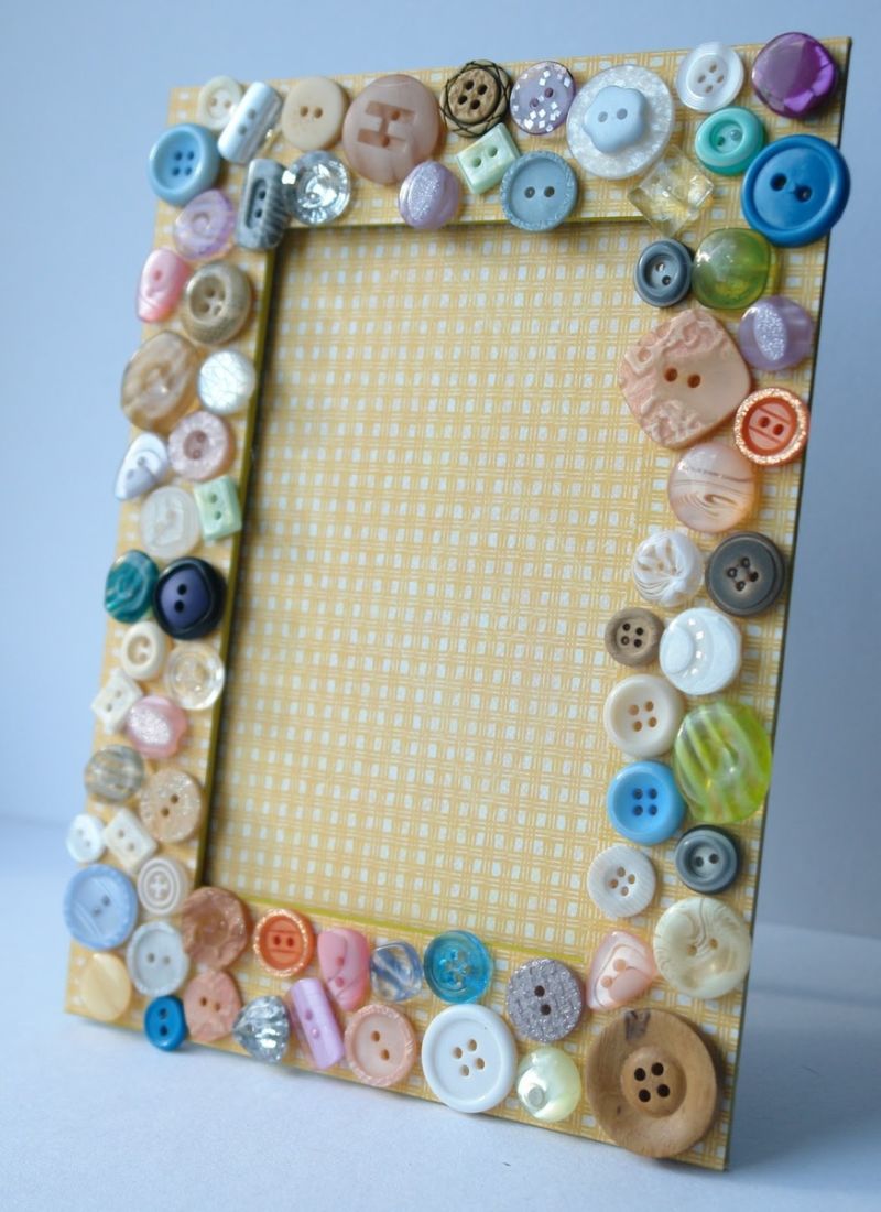 Във всеки дом има купчина ненужни копчета, които са чудесни за декорация на обикновена рамка. Могат да се залепят с лепило, но е добре да използвате пистолет за лепило, за да сте сигурни, че ще се залепят и няма да паднат.