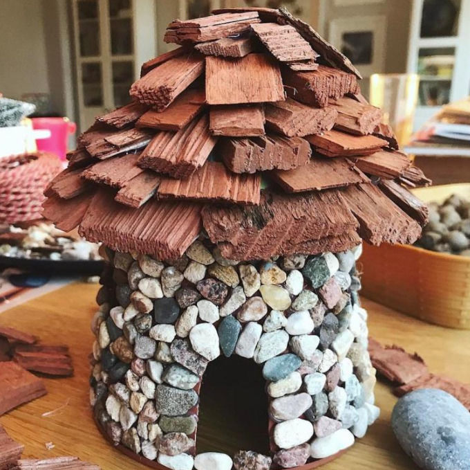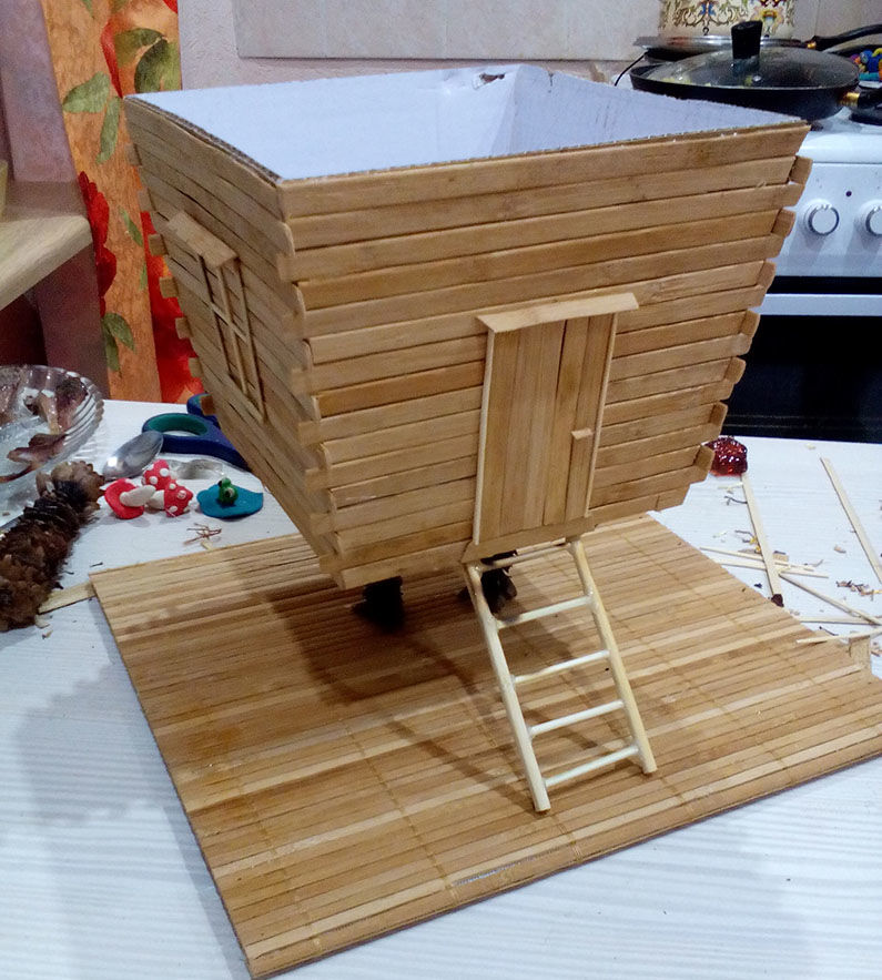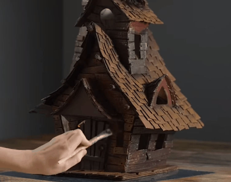 Такъв продукт придобива много оригинален вид и дълго време радва окото на майстора. Стените на "сградата" могат да бъдат покрити с оцветител, който придава реалистичен вид на занаята.