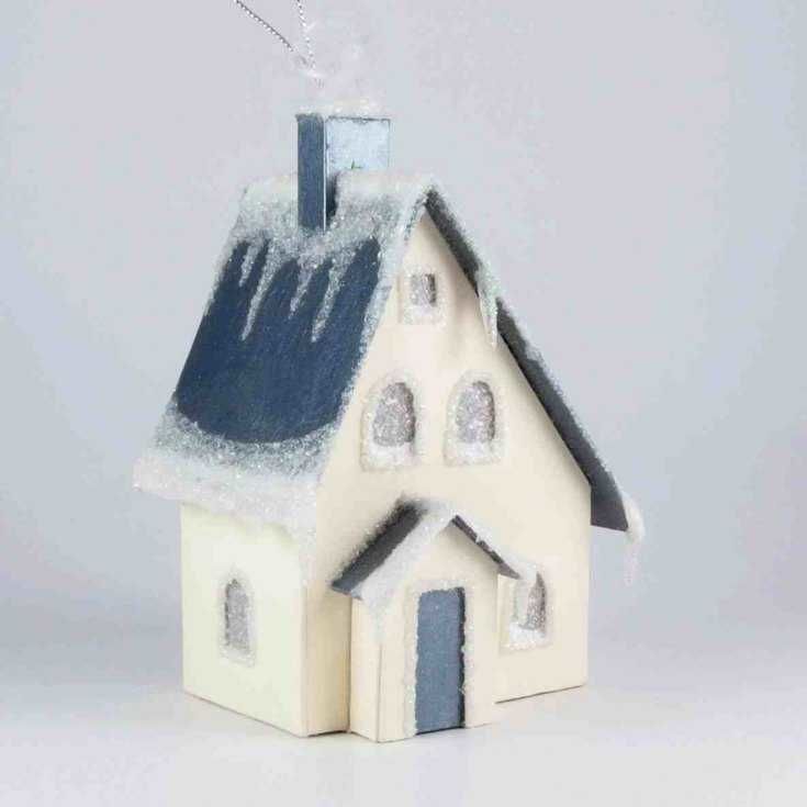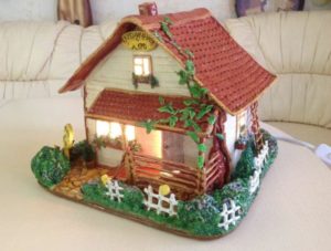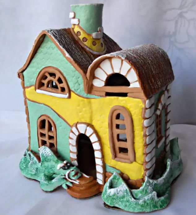 Не по-малко интересна идея е да се създаде коледна играчка под формата на къща. Майсторите могат да използват различни техники, включително пластилин, солено тесто и полимерна глина.