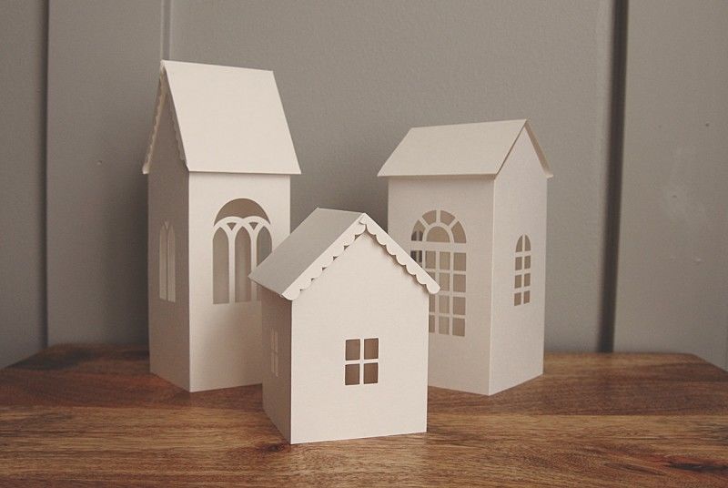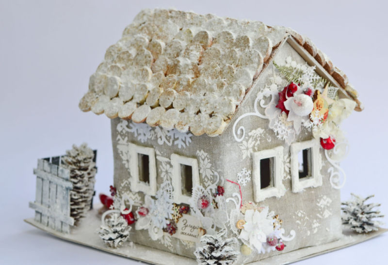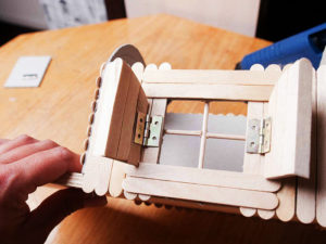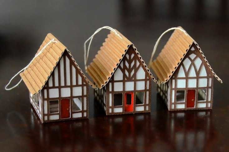 Компонентите се сглобяват един по един, като същевременно се закрепват стените и покривните скатове. Такива занаятчийски изделия обикновено са напълно поносими за декорация (акрилен лак или боя).